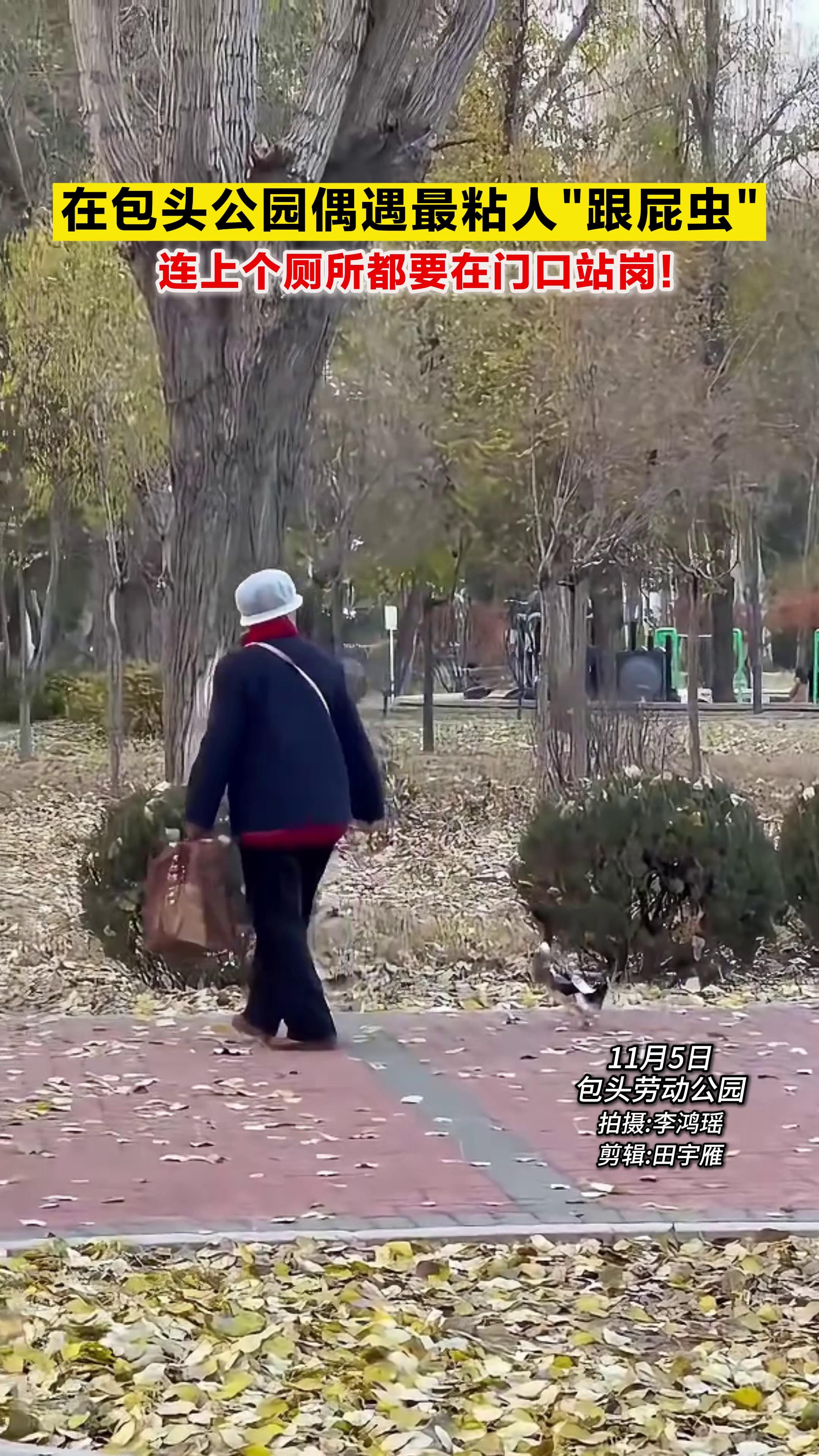 在包头公园偶遇最粘人 "跟屁虫"