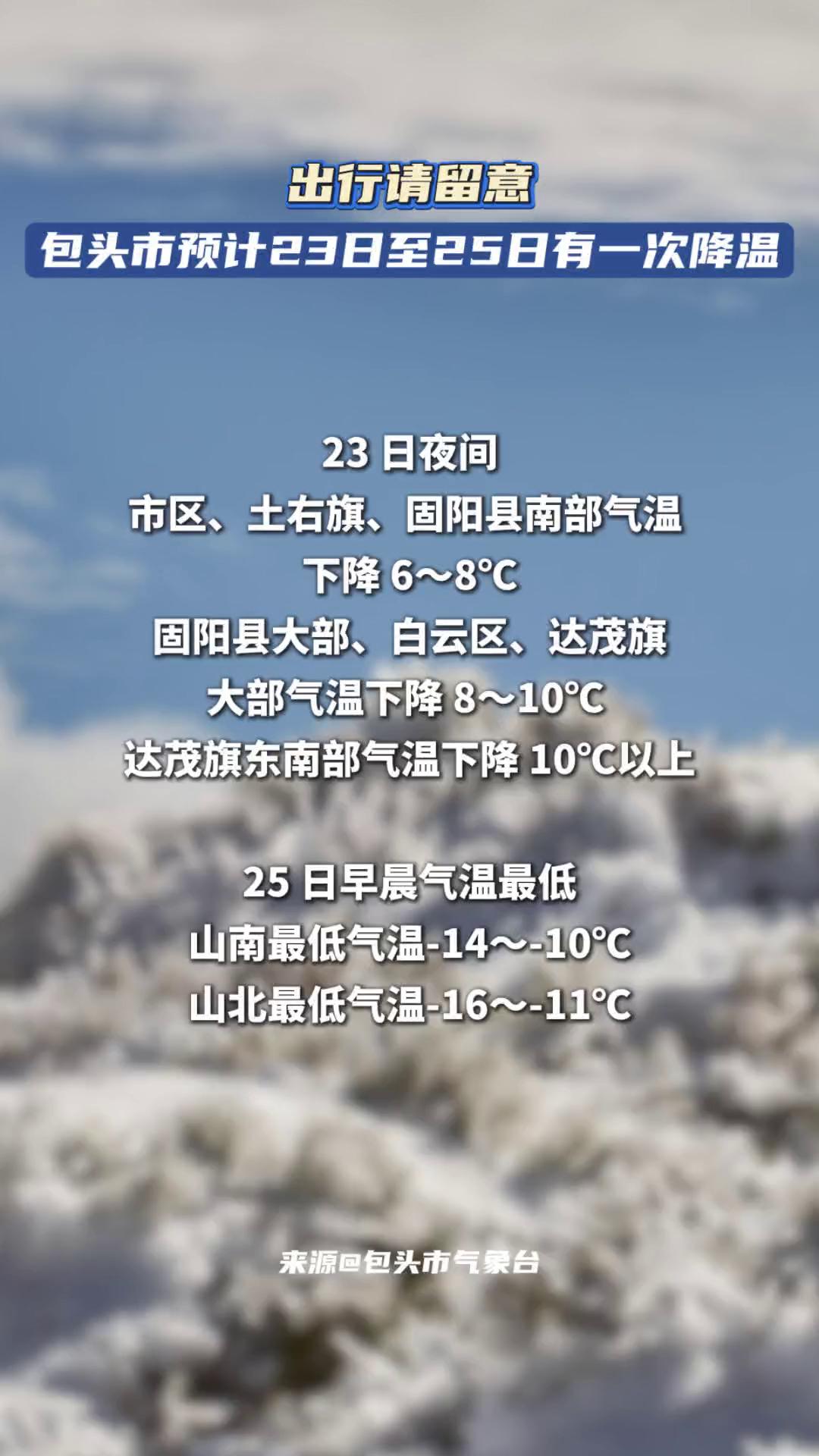 包头市预计23日至25日有一次降温