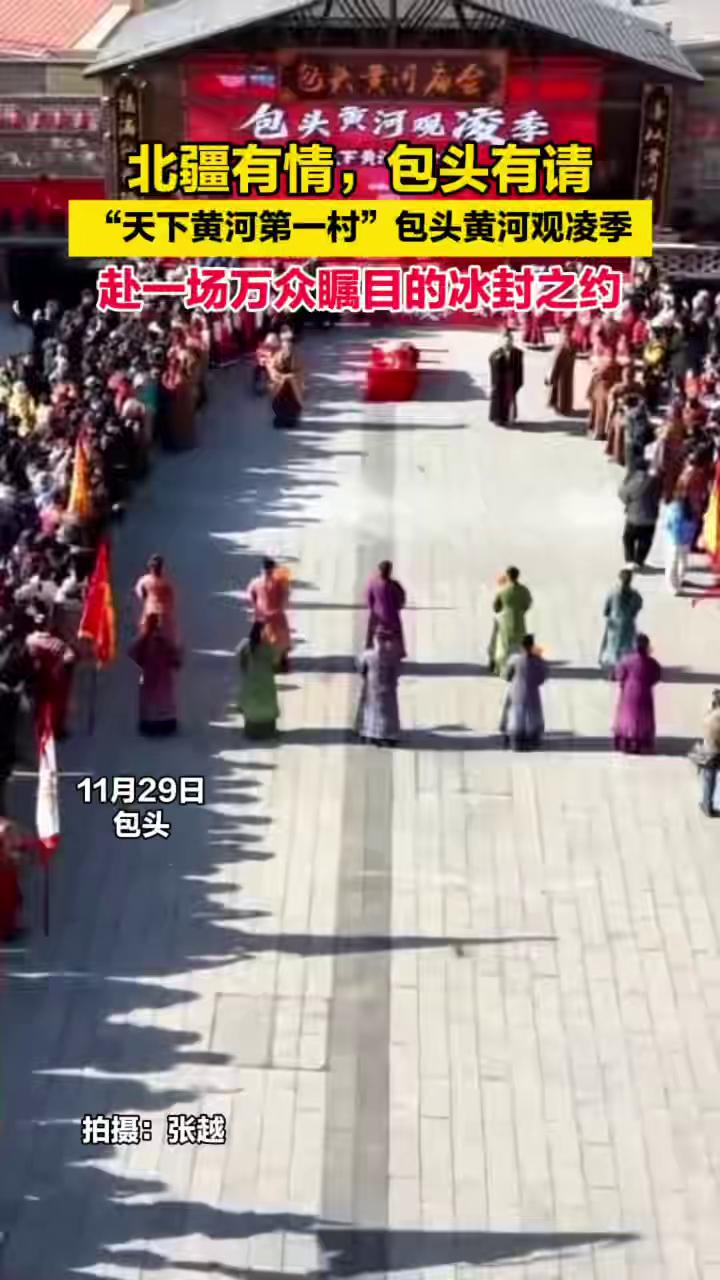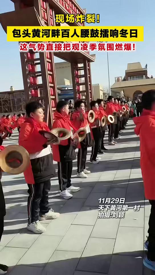 包头黄河畔百人腰鼓擂响冬日,这气势直接把观凌季氛围燃爆!