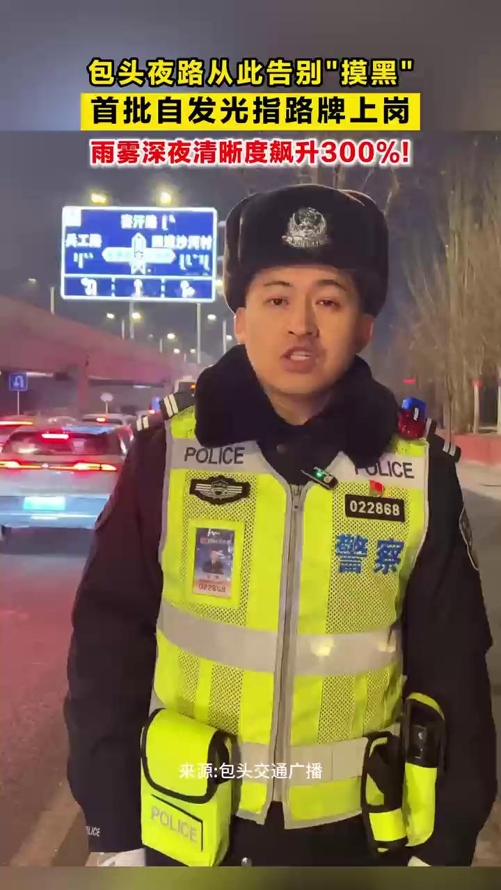 包头首批自发光指路牌上岗,雨雾深夜清晰度飙升300%!