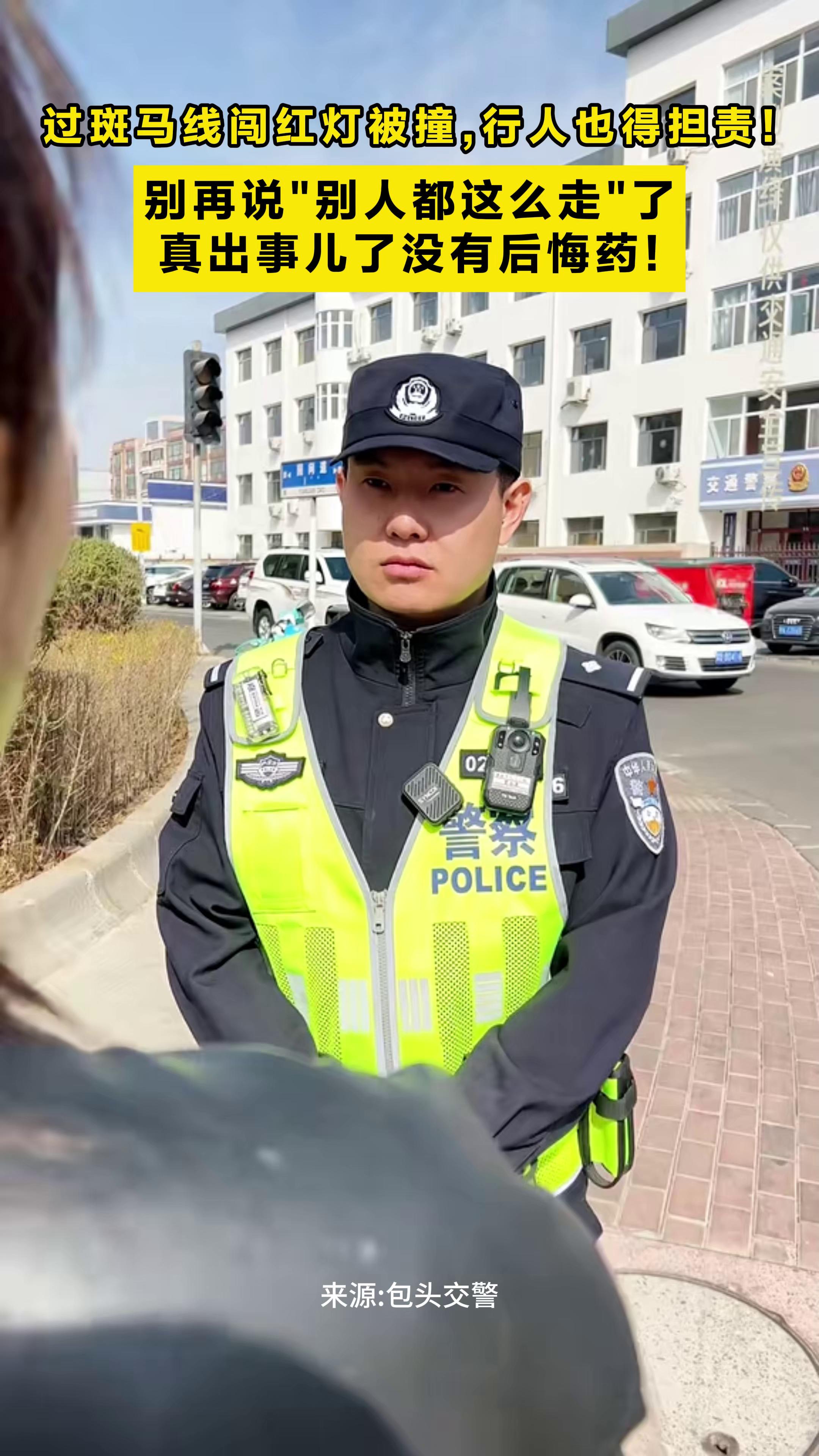 包头交警提示:过斑马线闯红灯被撞,行人也得担责!
