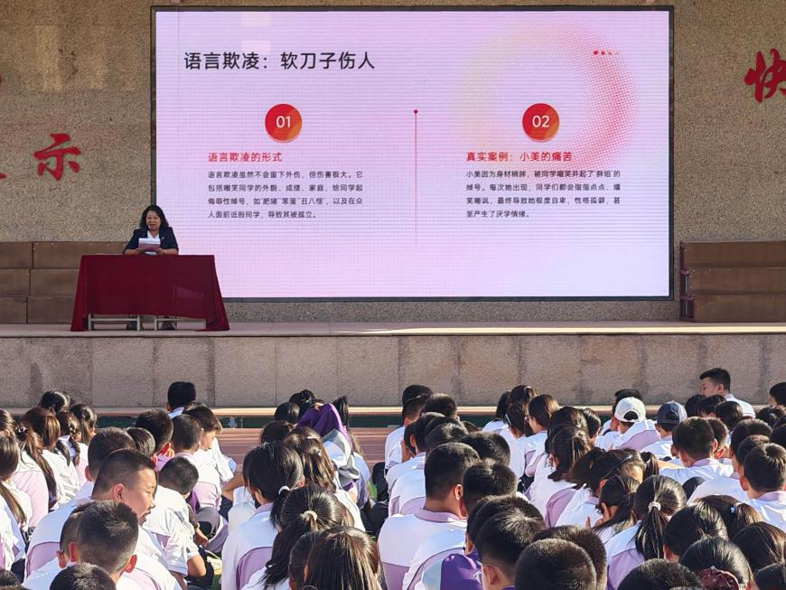 课堂上,徐娜以“多面怪兽”为喻,将校园欺凌的四种形态娓娓道来:身体欺凌的拳脚伤痛、语言欺凌的尖刻伤害、社交欺凌的孤立寒意、网络欺凌的无形纠缠,一个个贴近校园的真实案例,让“小打小闹”与“欺凌行为”的界限清晰浮现,也让学生读懂欺凌对成长的长远隐忧。