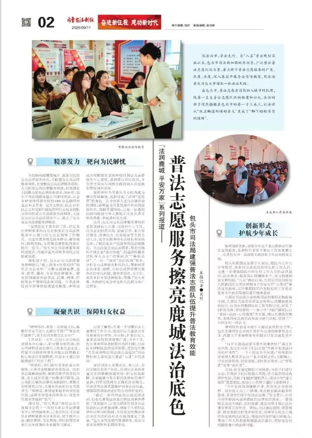 “通过一系列的法治公益巡讲活动,妇女儿童的法治意识和法治素养得到了显著提升,让受众群体对自身合法权益的认识更加清晰,增加了大家对法律知识学习的热情,为营造全民尊法学法守法用法的良好法治氛围奠定了基础。”包头市司法局四级调研员、依法与普法治理科科长郄凤平说。