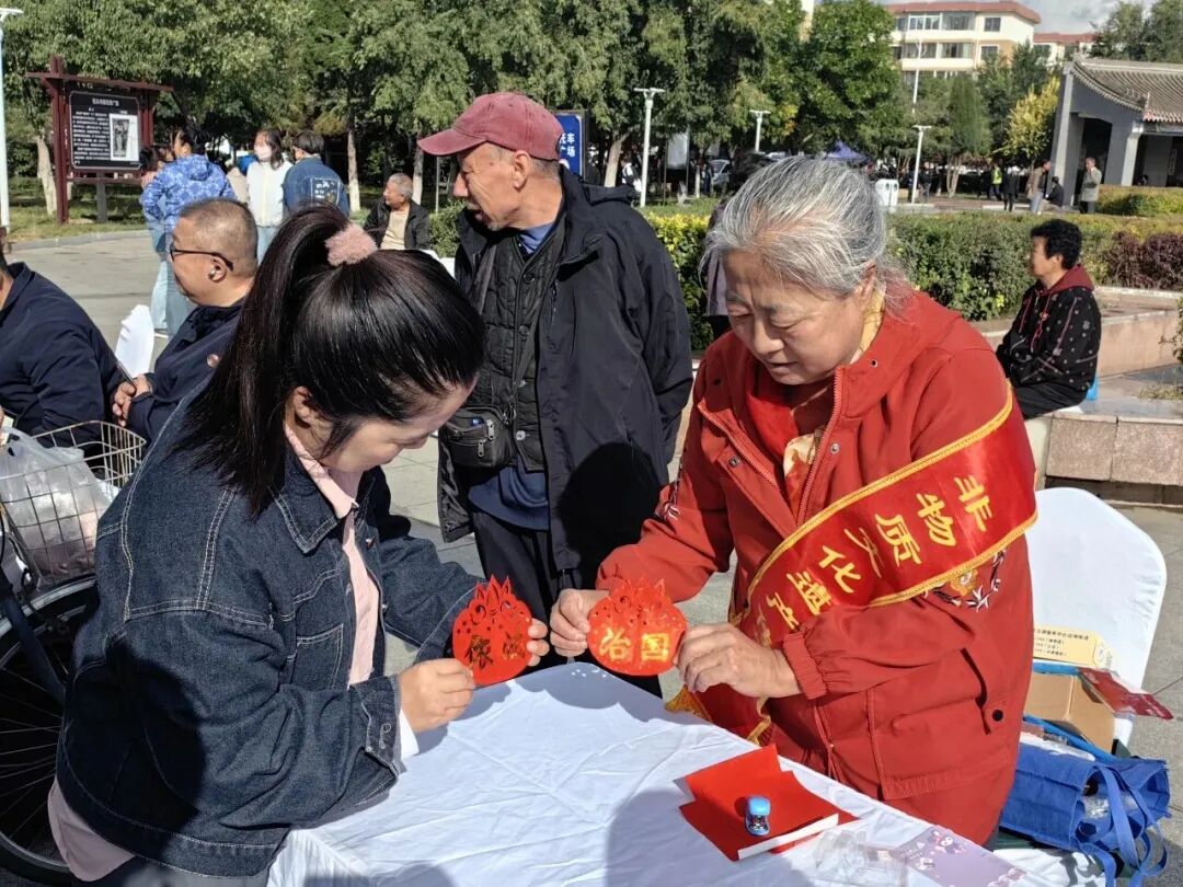 非遗体验项目极大地激发了群众学法的主动性。大家通过参与现场学法答题获得亲手体验非遗技艺的资格,在传承人的耐心指导下,一个个带着法治元素的剪纸作品在群众手中诞生,大家举着自己的“法治剪纸”脸上满是成就感。