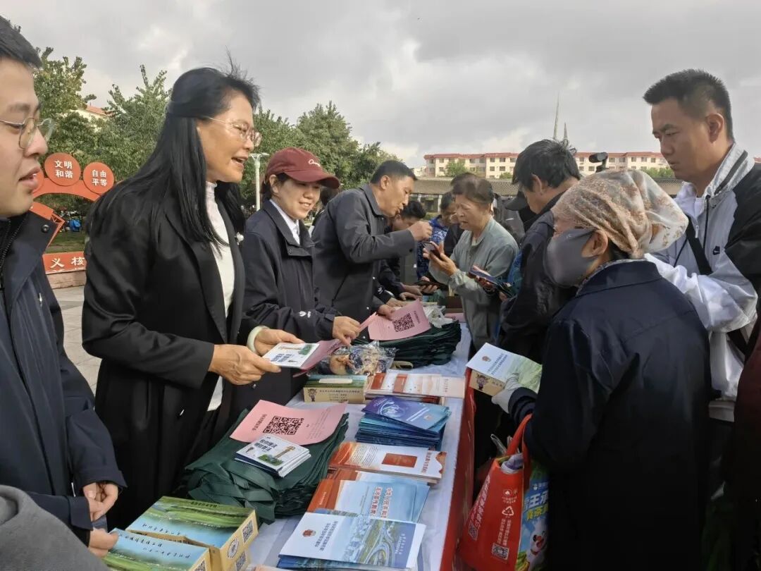 普法志愿者们还为现场群众发放与民法典、法治宣传教育法、妇女权益保障法等法律法规及反诈、预防未成年人犯罪等内容相关的宣传材料,鼓励群众扫码参与答题活动。