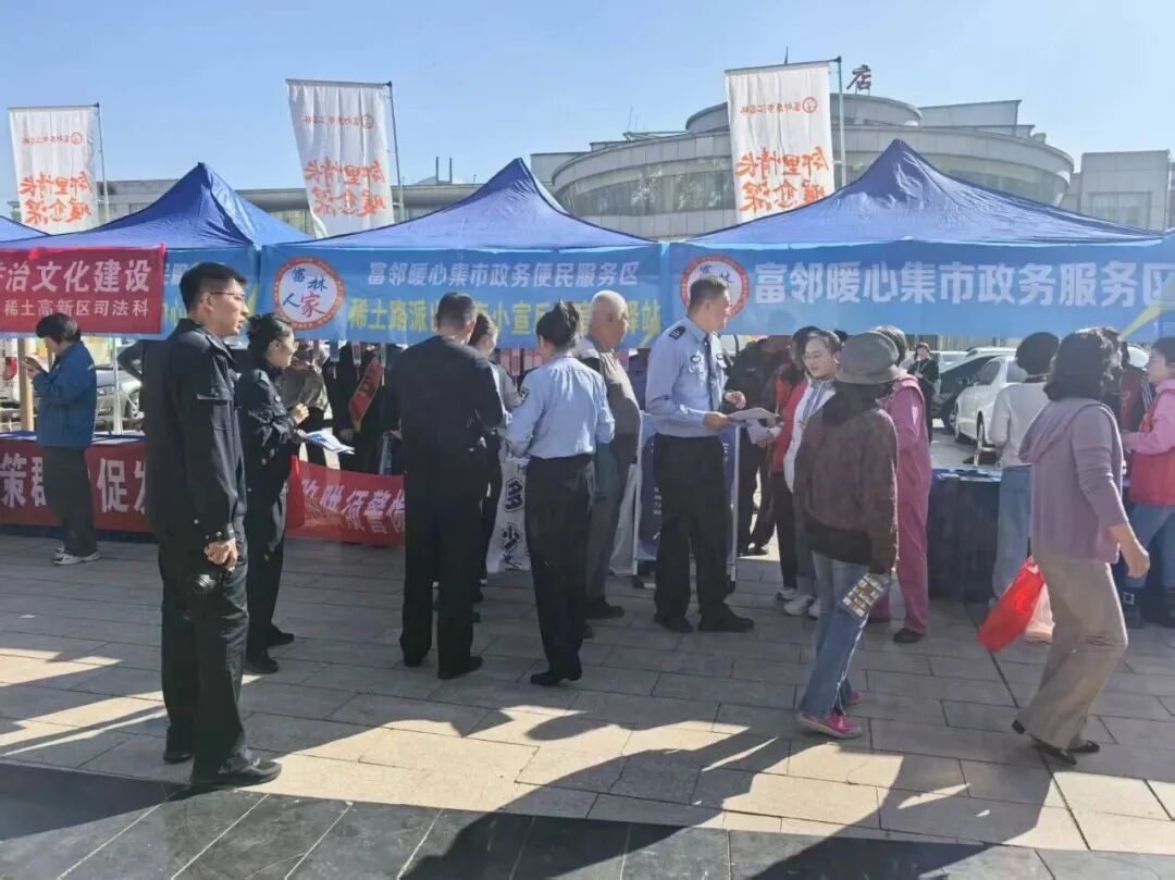 近日,稀土高新区综治中心联合富林路社区,在稀土大厦北广场以 “文艺汇演 + 户外集市” 形式开展普法活动,分 “文艺汇演普法”“集市互动学法”“便民法律服务” 三大板块。