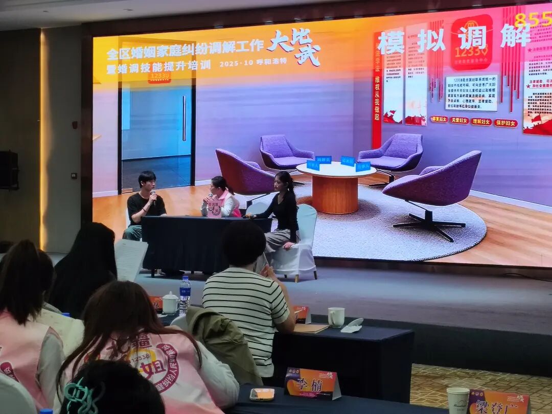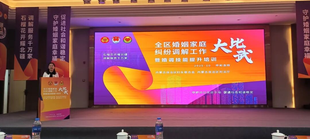 10月14—16日,内蒙古自治区妇联守护婚姻家庭幸福 促进社会和谐稳定——“石榴花开耀北疆·调解服务千万家”全区婚姻家庭纠纷调解工作“大比武”暨婚调员素质能力提升培训在呼和浩特市举办。