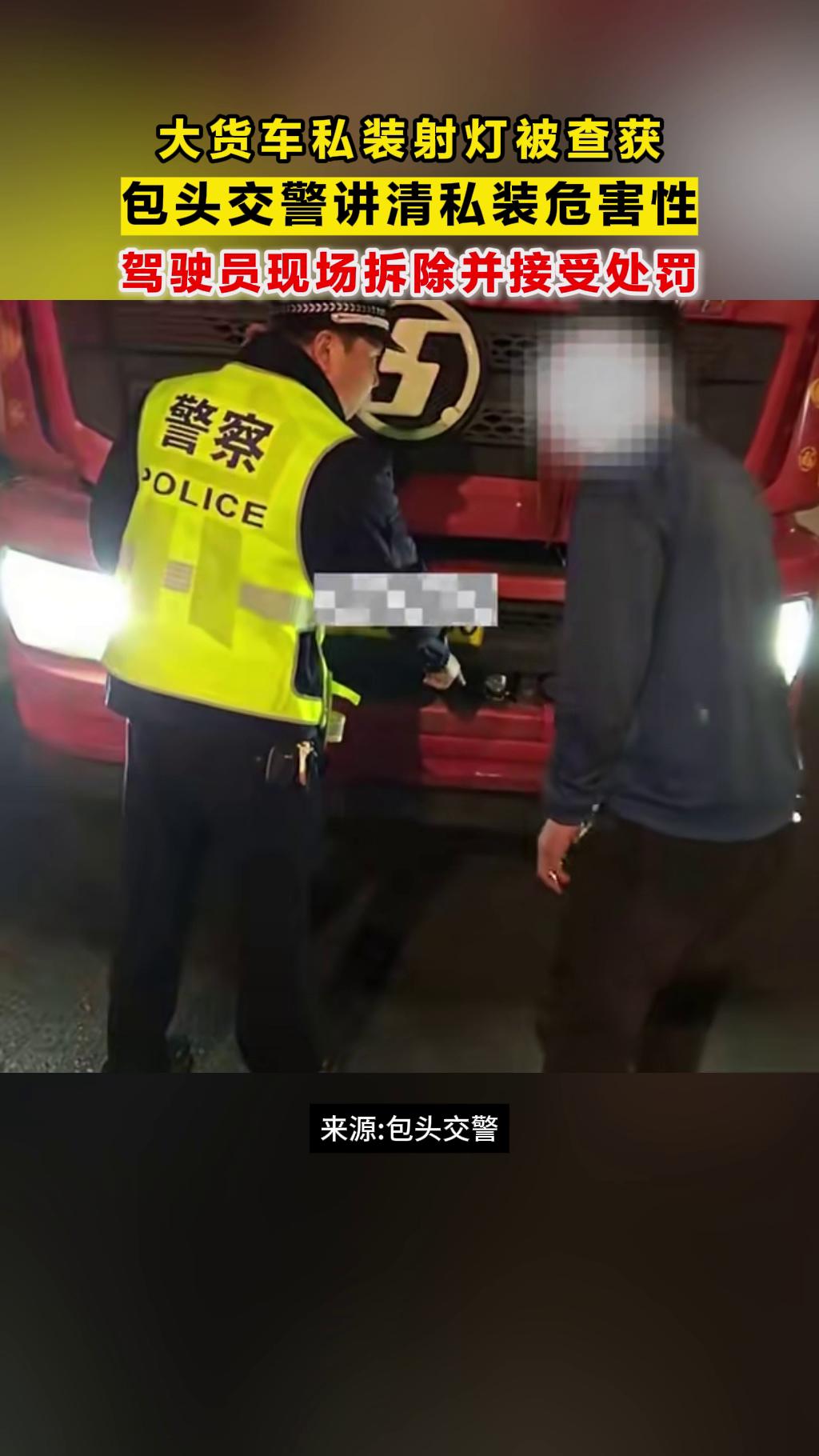 大货车私装射灯被查获,包头交警讲清私装危害性