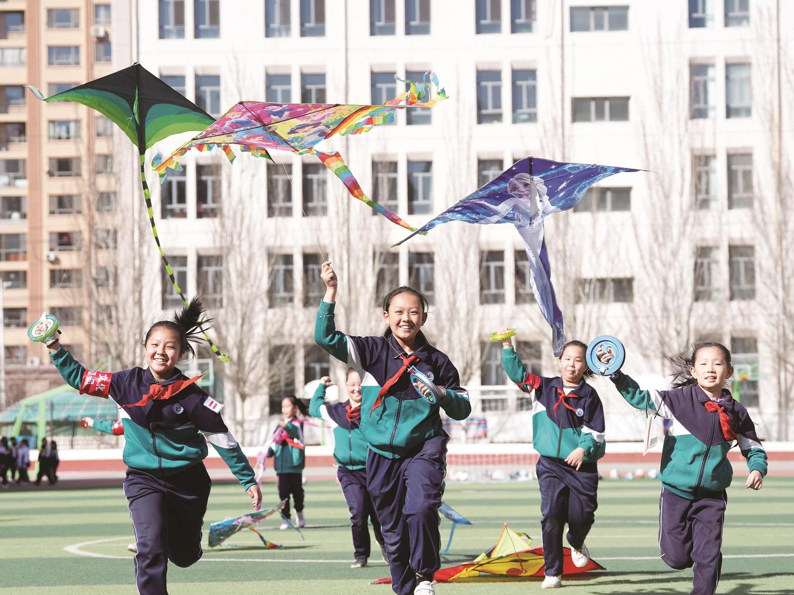 春光和煦,内蒙古科技大学实验小学的操场上热闹非凡。湛蓝天空下,纸鸢高飞。孩子们手中紧握着风筝线,奔跑着、欢笑着,脸上洋溢着开心与幸福的笑容,同时感受着春光的温暖与美好。