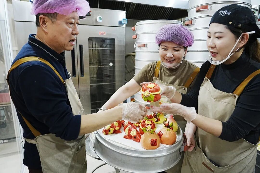 虽是90后,赵予彤却始终坚守花馍制作的老传统——老肥发面、天然食材调色,功夫十足,让每个面团都能“挂住勺”“站住脚”。如今,她已开发出奶香馒头、鲜奶玫瑰馒头、药膳系列馒头等30余种花样,凭借鲜活多样的造型、新鲜纯正的口感,她的花馍不仅在包头本地名声大噪,更吸引周边城市的食客专程驱车前来,花馍礼盒也通过快递物流香遍全国各地。