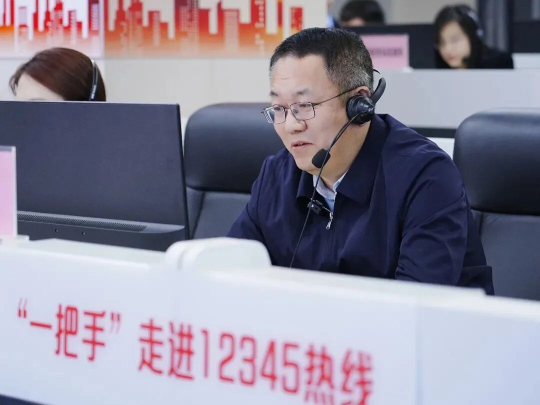 活动开始前,在热线平台工作人员的细致指引下,胡海峰及各科室负责人认真熟悉接线流程和工单录入规范,手中的笔记本上提前标注好常用的规范用语以及回应要点,眼神专注而坚定,做好了迎接群众来电的充分准备。大厅内,每个接线席位前都摆放着纸笔、政策手册,工作人员神情专注,整个现场既紧张有序,又充满温情。